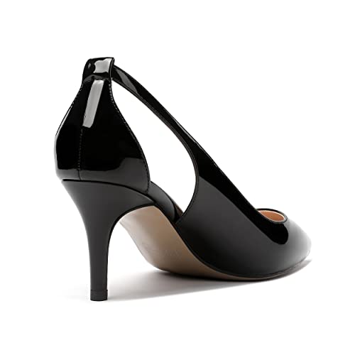 MERRORI Women's Pointed Toe Solid Slip On Patent Stiletto Mid Heel Pumps Shoes 2.5 Inch 3