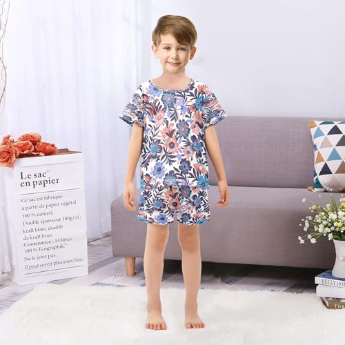 Abstract Purple Flower Kids Pjs Set Boys Girls Summer Short-Sleeve Sleepwear Pajamas 2PCS 6