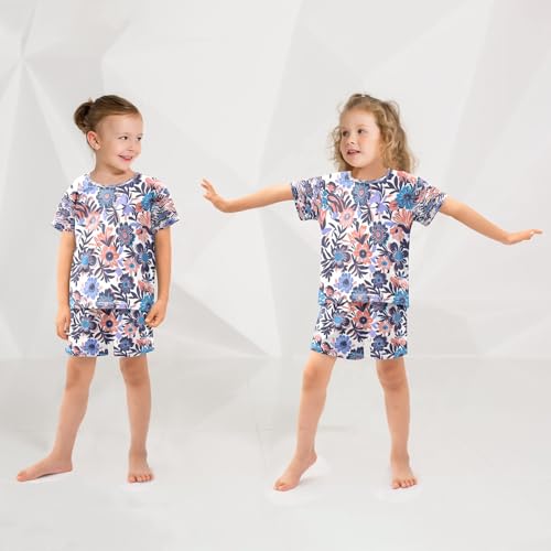 Abstract Purple Flower Kids Pjs Set Boys Girls Summer Short-Sleeve Sleepwear Pajamas 2PCS 4