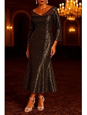 More information about Tuxedo Dress Portrait Collar Sequin Blazer Dress Mermaid / Trumpet Formal Wedding Satin Elegant 3/4 Sleeve Tea Length Midi Length