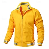More information about Men's Lightweight Jacket Bomber Jacket Daily Vacation Pocket Spring & Fall Plain Fashion Classic Lapel Regular Black White Yellow Light Green Dark Blue Jacket