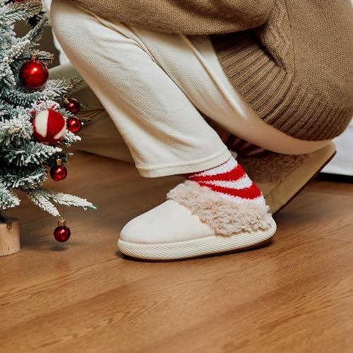 HOT ! Chantomoo Slippers for Women and Men Memory Foam House Shoes Faux Suede Upper Rubber Sole Faux Fur Lining Warm Comfy Indoor Fuzzy Slippers Beige Size7 8 6.5