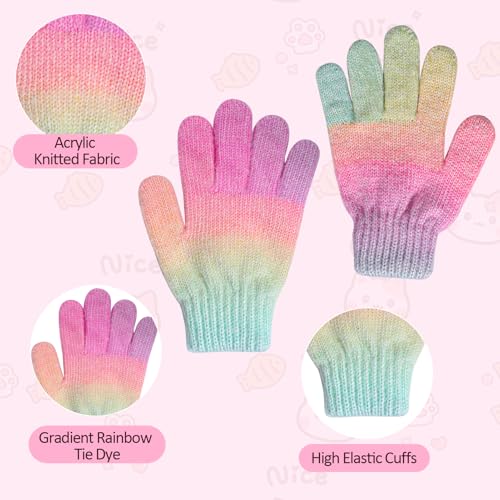 Cat Face Earflap Beanie and Gloves Set for Girls Rainbow Pom Knit Hats Winter Outdoor Snow Ski Caps Age 2-10 6