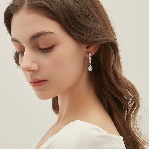 EAMTI Silver Dangle Teardrop Earrings for Women Cubic Zirconia Pear Cut Sterling Silver Post Engagement Wedding Birdal Drop Earrings for Brides 5