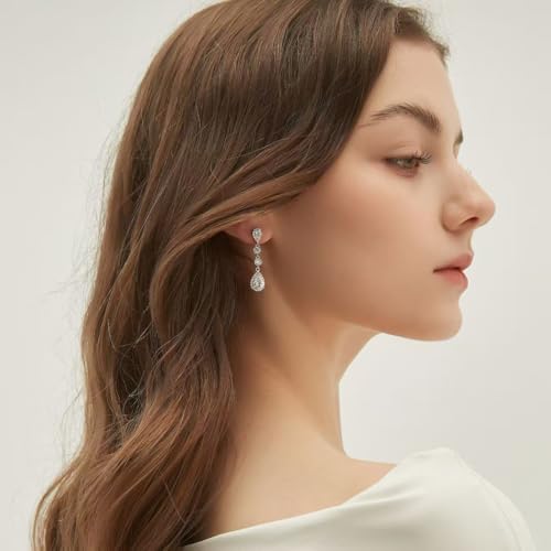 HOT ! EAMTI Silver Dangle Teardrop Earrings for Women Cubic Zirconia Pear Cut Sterling Silver Post Engagement Wedding Birdal Drop Earrings for Brides