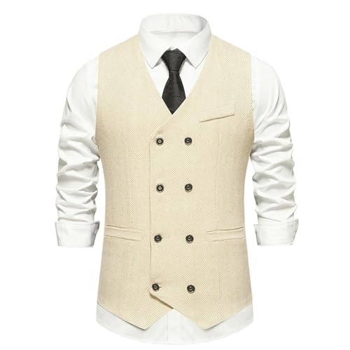 HOT ! Men’s Double Breasted Tweed Suit Vest Herringbone Vintage Waistcoat for Wedding Business Party Fall or Winter Outfit
