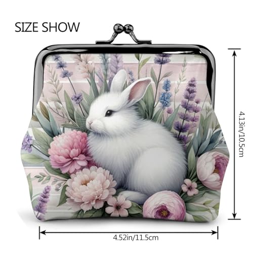 Pu Leather Buckle Coin Purse Easter-Rabbits-Floral Girls Kiss-Lock Change Purse Wallets 1