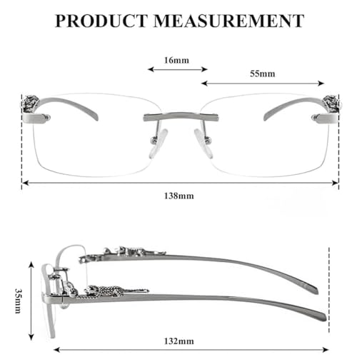 Origin: Made in the USA or ImportedVersatile Style: Whether you're channeling the 70s, 80s or 90s, these clear tint silver frame designer leopard glasses are a great addition to your wardrobe. The black square glasses design is timeless, making them suitable for both polarized glasses women and men.Clear lens fashion for mens everyday wear. eyeglasses for men are perfect choice for vacation and activities, such as driving, shopping, traveling, taking photos, and being suitable high fashion accessory and daily wear all year round.These square glasses design offers a classic look, while the square frameless sunglasses design adds a touch of modernity, making them a perfect fit for any fashion-forward individual. These glasses are not just made for men; they also serve as polarized sunglasses women would love to wear also.Rectangle glasses for men and women fashion. best gift idea with silver metal wire frame glasses. small wire lens hip hop glasses for men.up-to-date RETRO RIMLESS RECTANGLE CLEAR GLASSES: Frameless rectangular glasses with a trendy clear frameless lens design, with silver metal frame temple give these eye glasses stylish and retro style shades, these vintage rectangle glasses can block 100% harmful UVA, UVB rays, protect your eyes against long term UV damage. High-Definition Lens Gives you a Natural & Clear Vision, and keeping your eyes healthy.Exquisite Design For Men And Women:These frameless sunglasses with metal leopard temples that prominent personality, show charm, walk a different style and keep your eyewear collection fresh and up to date as well.