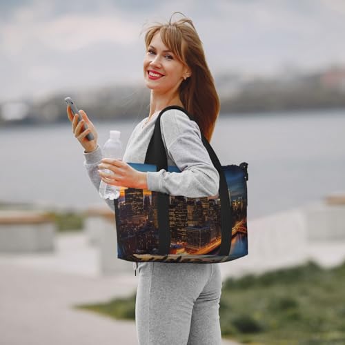 HOT ! Travel Duffel Bag for Women, Large Shoulder Weekender Overnight Bag, Sport Gym Bag for Men, Carry On Tote Bags, New York City Scenery Luggage Bag for Travel Essentials
