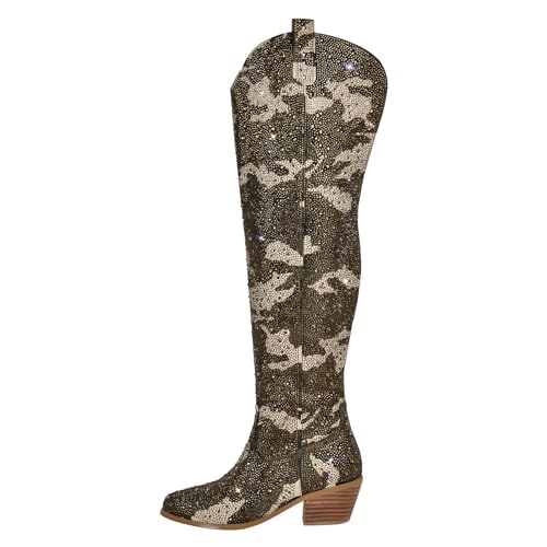 More information about richealnini Women's Embroideried Rhinestones Western Cowboy Boots Sparkley Stretchy Long Shaft Wide Calf Thigh High Boots