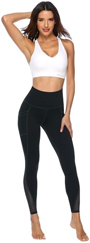 AFITNE Women’s High Waist Mesh Yoga Leggings with Side Pockets, Tummy Control Workout Squat-Proof Yoga Pants 3