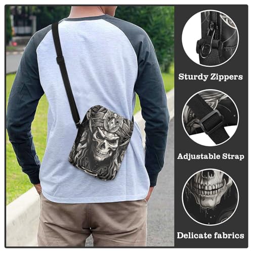 HOT ! Viking Skull Sling Bag Zipper Closure Crossbody Messenger Bag with Card Phone Passport Compartment 6.6×9.4×2.5 inches