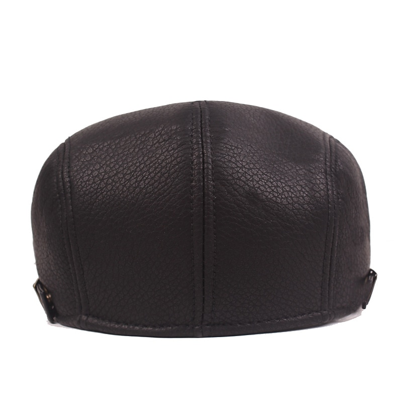 Highlights [Fabric]: Crafted from premium faux leather, this men's flat cap offers a luxurious yet durable feel. The finely-textured surface enhances its elegant style, making it a sophisticated choice for various occasions. [Design]: The cap features a sleek, classic design that's reminiscent of 1920s streetwear fashion. It's equipped with an adjustable strap at the back to ensure a perfect fit for various head sizes, and the interior is lined with a soft fabric for added comfort. [Design Highlights]: A timeless silhouette and versatile color options in black and brown ensure this cap effortlessly complements any wardrobe. The clean, plain pattern offers a refined fashion statement for both formal and casual settings. [Occasions]: Ideal for outdoor activities, daily wear, and going out, this flat cap serves as a stylish accessory for winter, spring, and fall seasons. Its warm material makes it a practical yet fashionable choice for colder weather. [Size]: Available in one size, the adjustable design ensures it fits a range of head sizes, providing comfort and style for any wearer looking to add a classic touch to their ensemble.