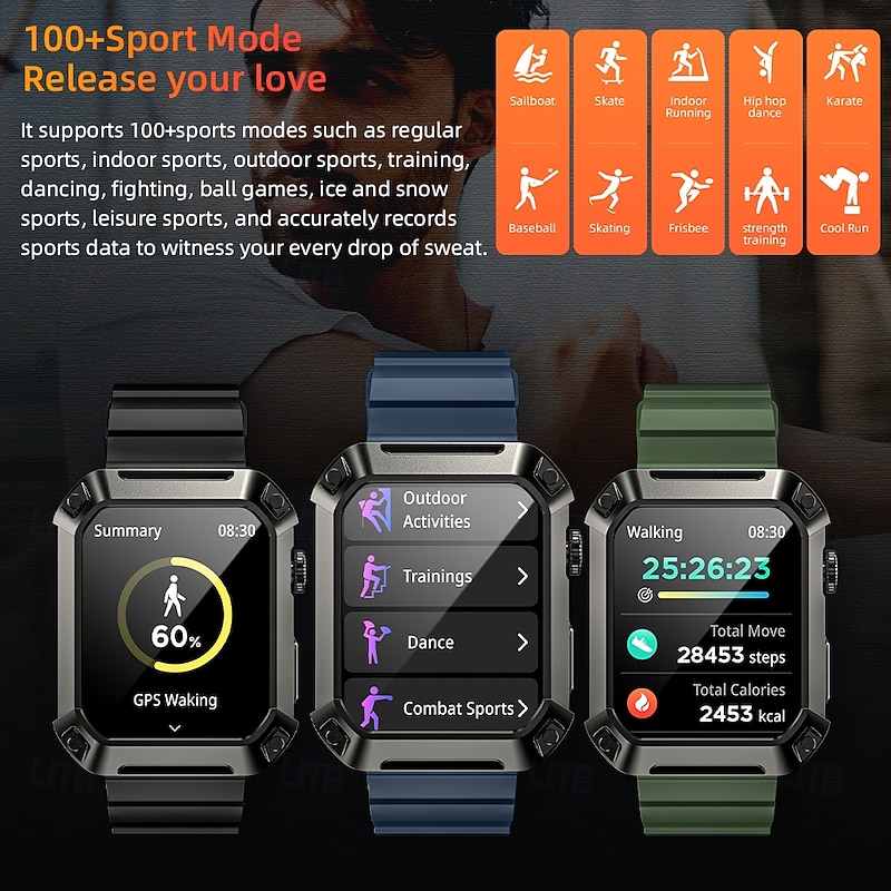 LOKMAT OCEAN 2 PRO Smart Watch 1.85 inch Smartwatch Fitness Running Watch Bluetooth Pedometer Call Reminder Activity Tracker Compatible with Android iOS Women Men Long Standby Hands-Free Calls 13