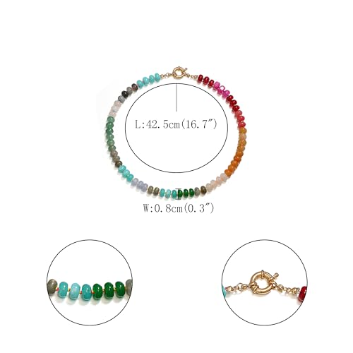 • MATERIAL: Bohemian Rainbow Beaded Necklace is made of colorful natural gemstones and a gold-plated lobster clasp for easy wear. This beaded necklace is sturdy and can be worn all day long.