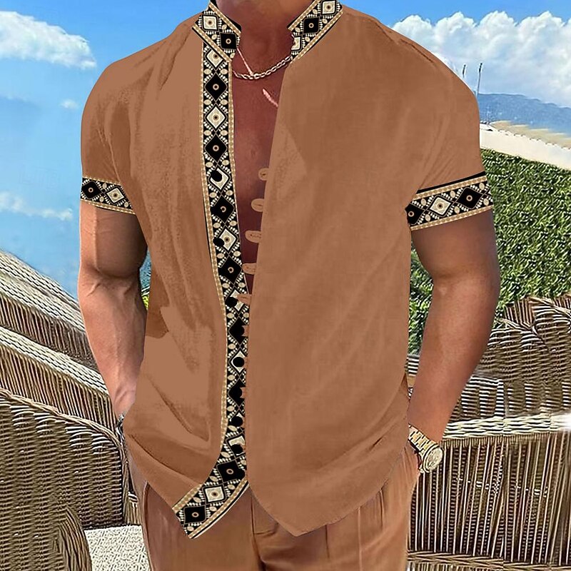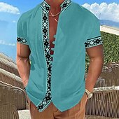 More information about Men's Southwestern Print Button Up Shirt Printed Shirts Short Sleeve Hawaiian Resort Vacation Holiday Daily Wear Summer Standing Collar Print Button-Down Blue Brown Green
