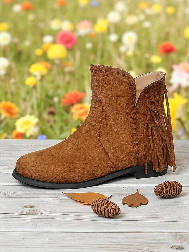 $32.99 - Women's Light Brown Fringed Ankle Boots – Vintage-Inspired Faux Suede Lace-Up Boots for Fall, Casual Days and Outdoor Adventures 2025. Shop for cheap Ankle Boots online? Buy at lightinthebox.com on sale today!