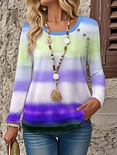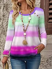 More information about Women's T Shirt Ombre Graphic Geometric Vintage Stylish Classic Long Sleeve Crew Neck Round Neck Regular Tops Daily Going out Weekend Buttons Print Purple Fuchsia Orange Spring Fall Winter