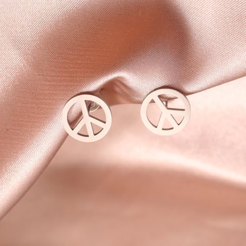 TEAMER Peace Sign Symbol Stud Earrings Stainless Steel Geometric Peace Symbol Stud Earrings Hippie Jewelry For Women 6