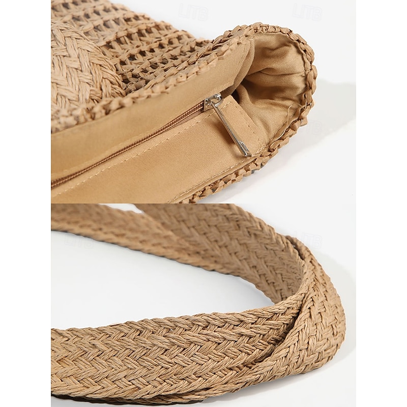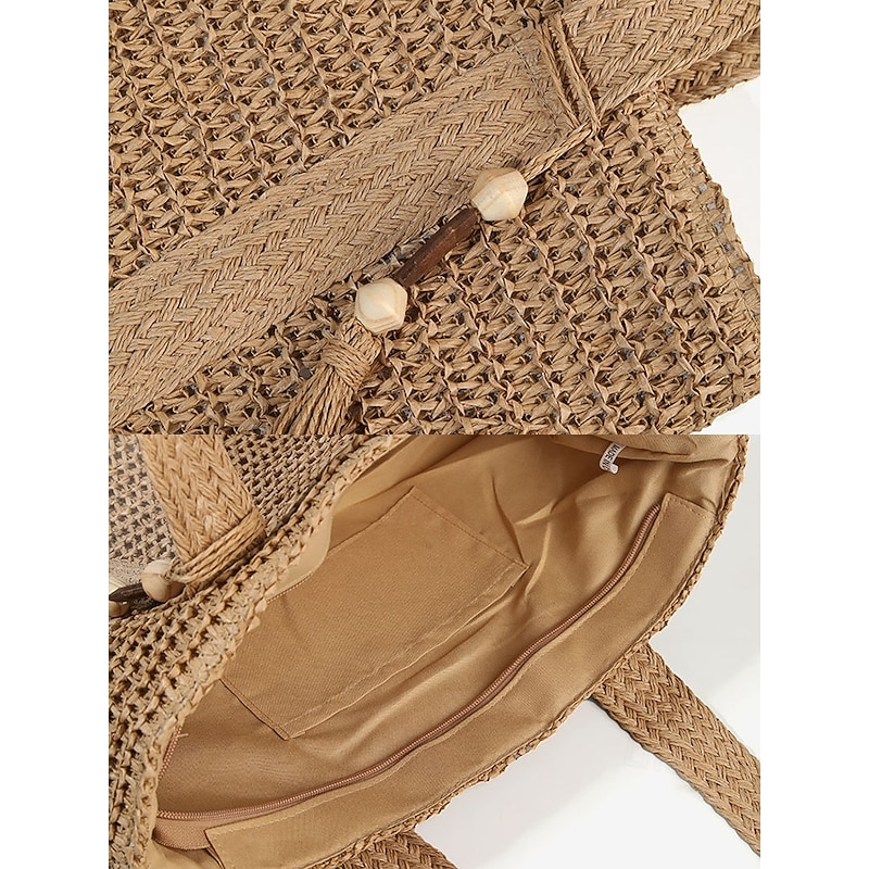 Women's Woven Straw Tote Bag with Tassel – Large Summer Beach Handbag for Vacation, Travel and Casual Outings Color White Green Khaki 11