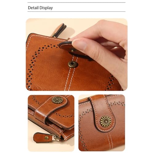 Premium Slim Genuine Leather Bifold Wallet for Women with Advanced RFID Blocking Technology and Zippered Coin Compartment (Brown)