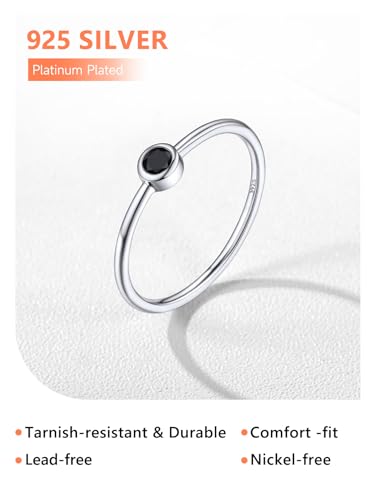 Silvora 925 Sterling Silver Simple Black Round Ring for Women Tiny Silver Wedding Band Rings Size 4-12 3
