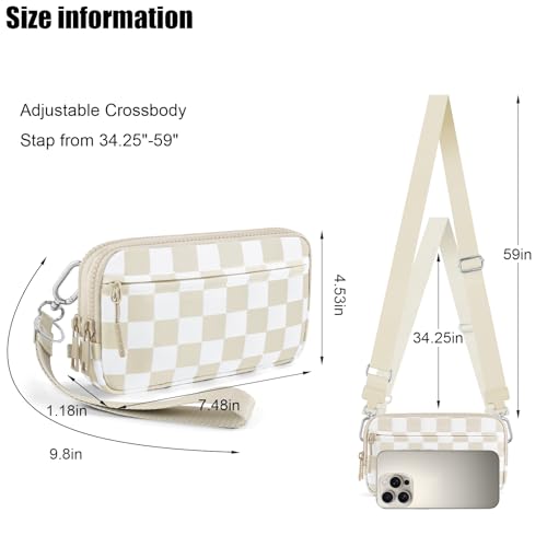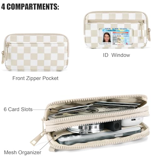 Checkered WristleWallets for Women, RFID Wallet Crossbody with 4 Zippers, Credit Card Holder Cell Phone Organizer 4