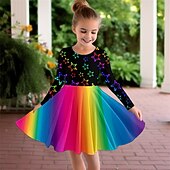 More information about Carnival Girls' 3D Rainbow Stars Dress Long Sleeve 3D Print Spring Fall Sports & Outdoor Daily Holiday Cute Casual Beautiful Kids 3-12 Years Casual Dress A Line Dress Above Knee Polyester Regular Fit