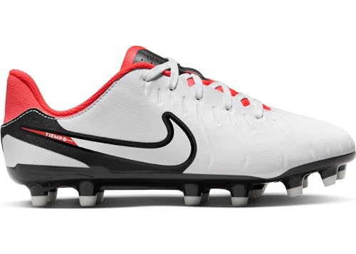 More information about Nike Jr. Tiempo Legend 10 Academy Little/Big Kids' Multi-Ground Low-Top Soccer Cleats (DV4348-100, White/Bright Crimson/Black) Size 5