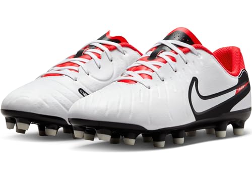Nike Jr. Tiempo Legend 10 Academy Little/Big Kids' Multi-Ground Low-Top Soccer Cleats (DV4348-100, White/Bright Crimson/Black) Size 5 1