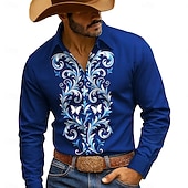More information about Men's Floral Print Flowers Shirt Button Up Shirt Cowboy Shirt Long Sleeve Western Style Outdoor Casual WorkWear Spring Fall Turndown 3D Print Collared Shirts Blue Beige
