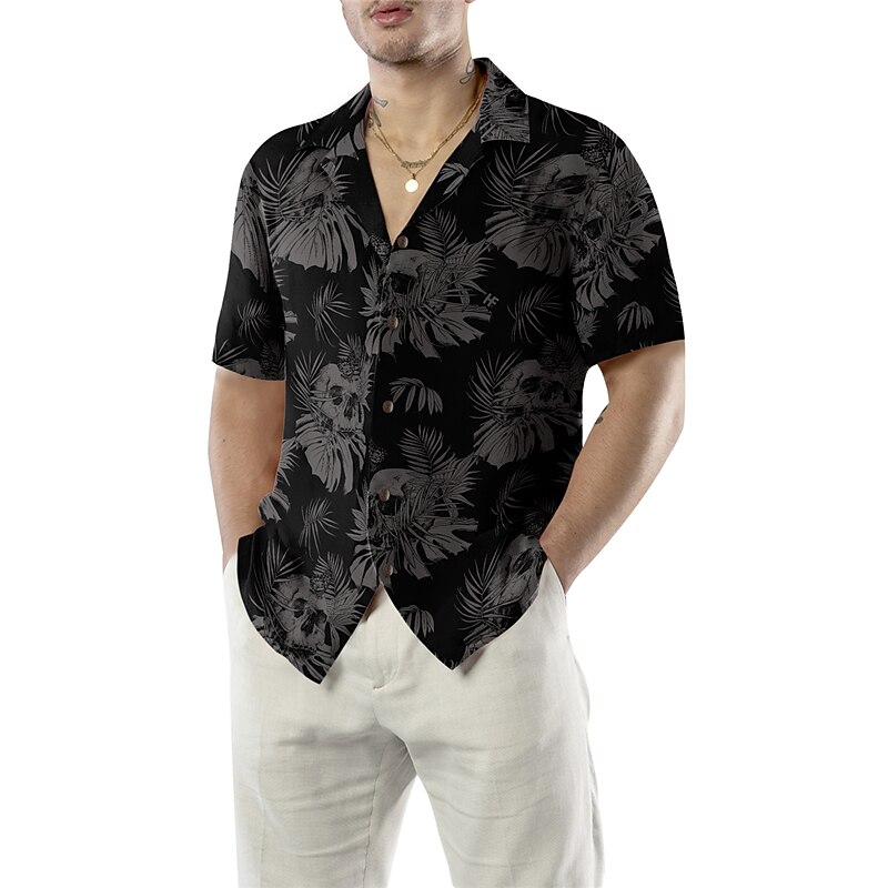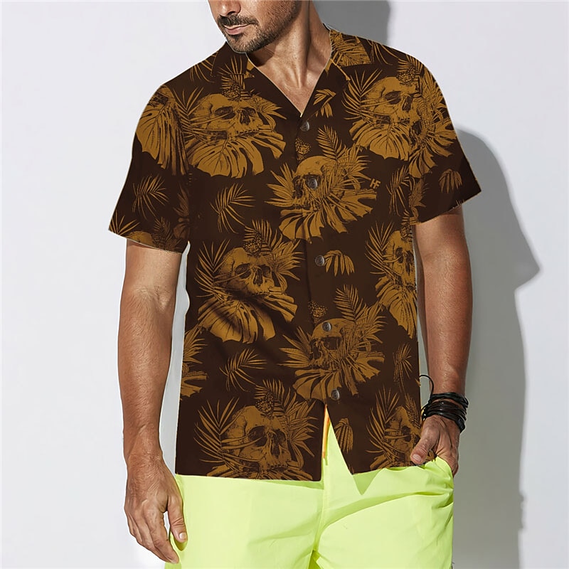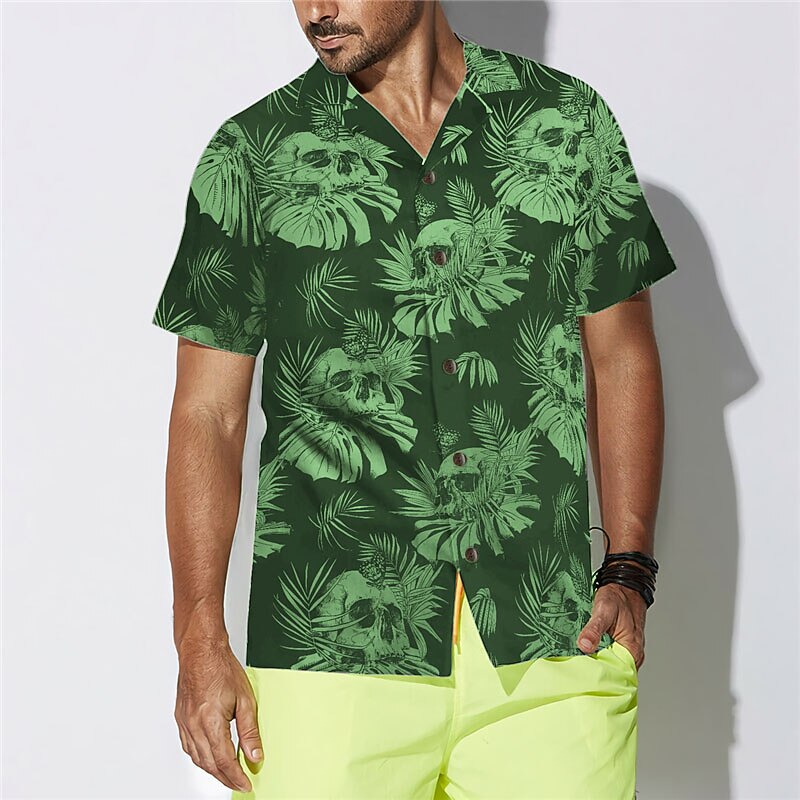 Highlights - Perfect for the Spring and Summer seasons. - Features a short sleeve design for added comfort. - Specifically designed for Men. - Embraces the Hawaiian style. - Eye-catching skull pattern. - Comes with a trendy turndown neckline.