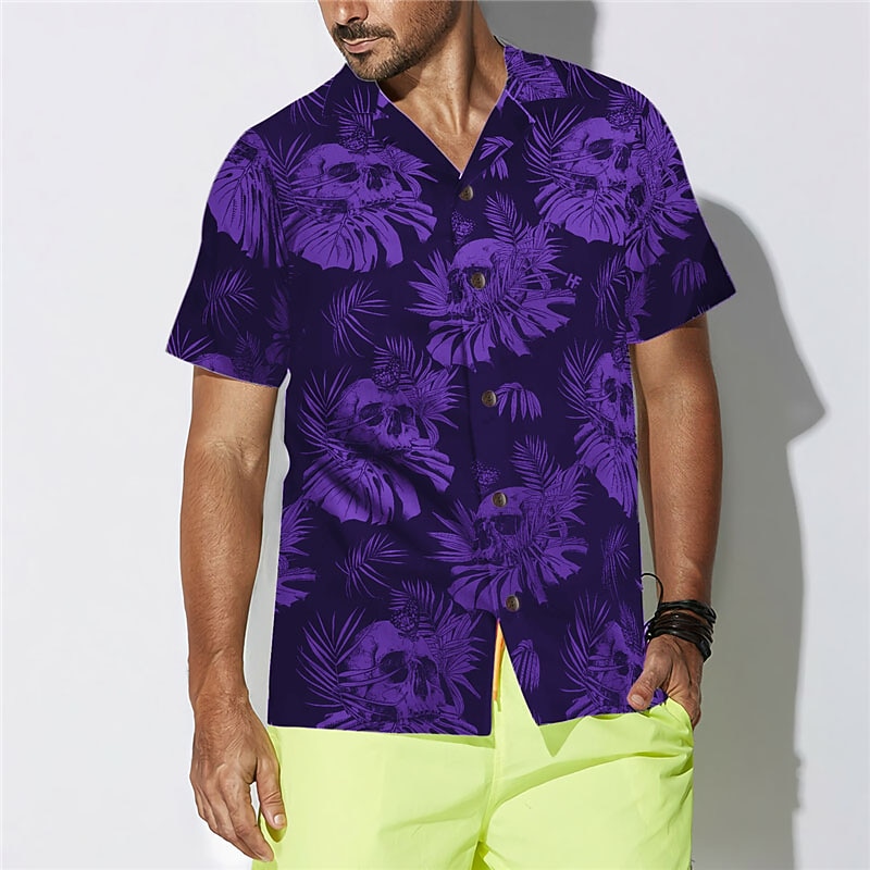 More information about Men's Skull Leaves Tropical Plants Shirt Summer Hawaiian Shirt Aloha Shirt Short Sleeve Shirt Turndown Tropical Fashion Hawaiian Casual Hawaiian Holiday Black Purple Brown S M L