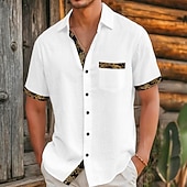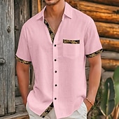 Men's Shirt Linen Shirt Viking Style Summer Shirt Beach Wear Button Up Shirt Solid Color Vacation Curise Black White Pink Khaki Short Sleeve Collar Summer Spring & Summer Clothing Apparel Color Block 1