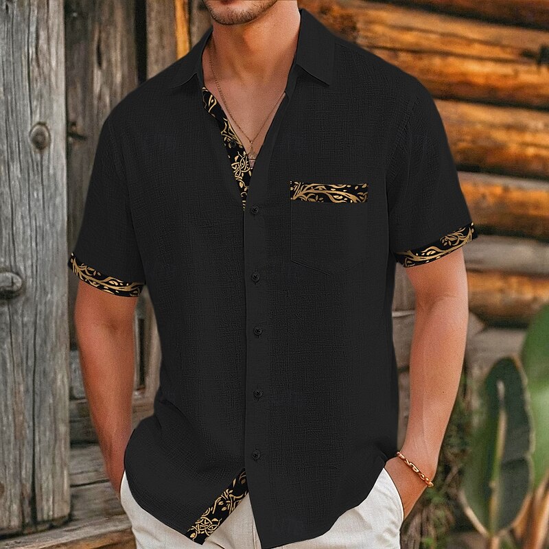More information about Men's Shirt Linen Shirt Viking Style Summer Shirt Beach Wear Button Up Shirt Solid Color Vacation Curise Black White Pink Khaki Short Sleeve Collar Summer Spring & Summer Clothing Apparel Color Block