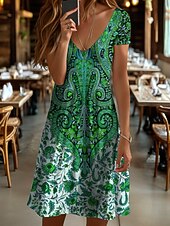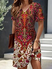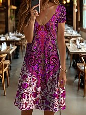 More information about Women's Mini Dress Knit Dress Casual Dress T Shirt Dress Tee Dress Sundress Vacation Casual Beach Regular Fit Floral Graphic Vintage Short Sleeve V Neck Red Blue Purple Green Summer Spring