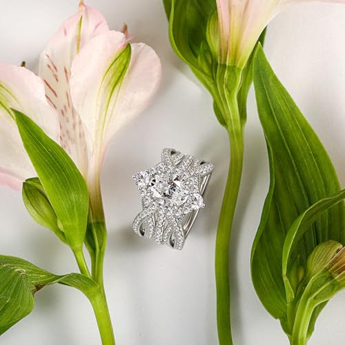 HOT ! Jeulia 2PCS Interchangeable Engagement Ring Set for Women Silver Halo 3.95ct Pear Cut Twist Band 14K White Gold Plated Wedding Promise Eternity Ring Band for Her with Jewelry Gift Box