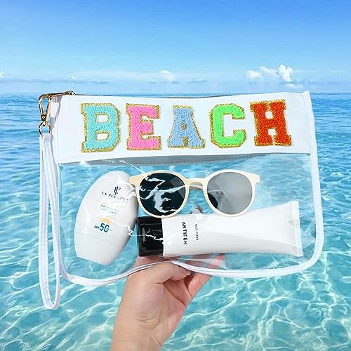 • Glitter Chenille Letters: Clear makeup bag comes with the BEACH chenille letter patches.These colorful letters have a fun glitter border that is sure to stand out from all of your other cosmetic toiletry bags!