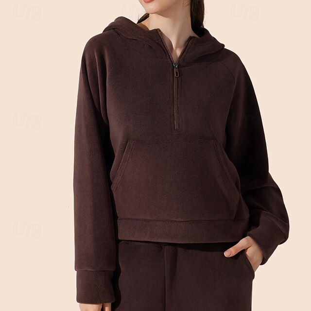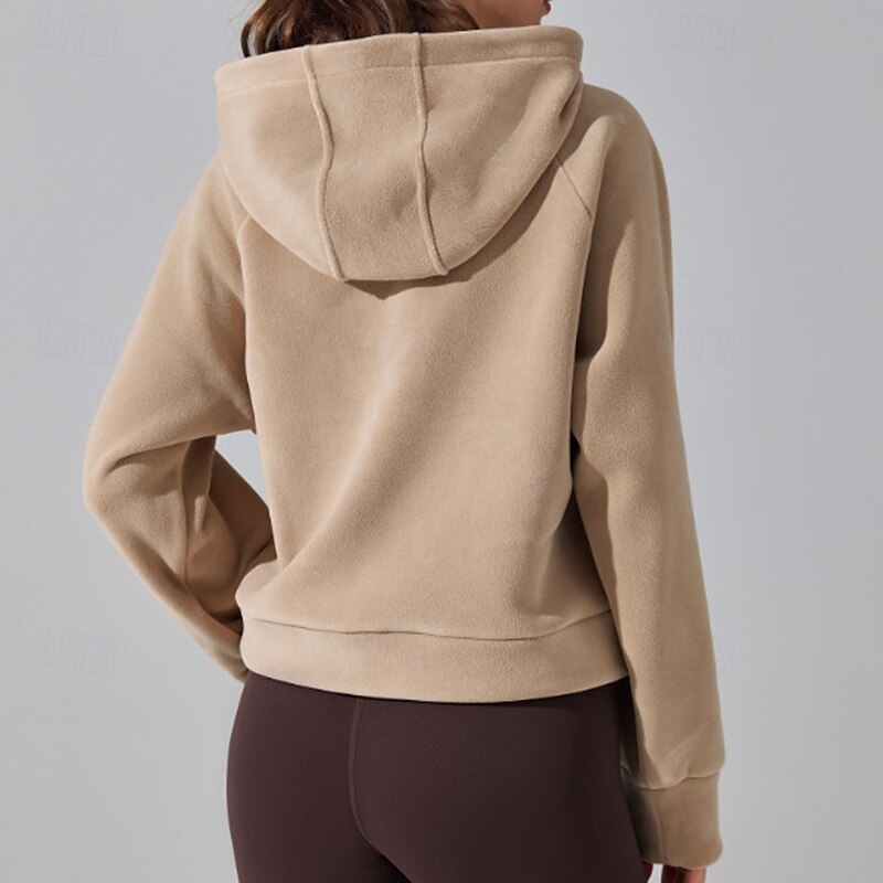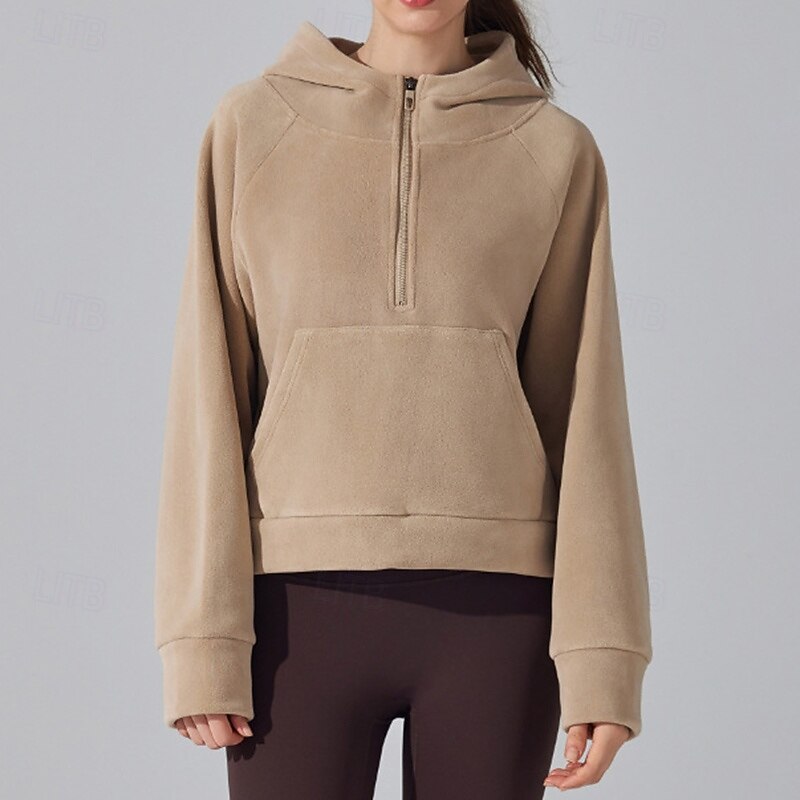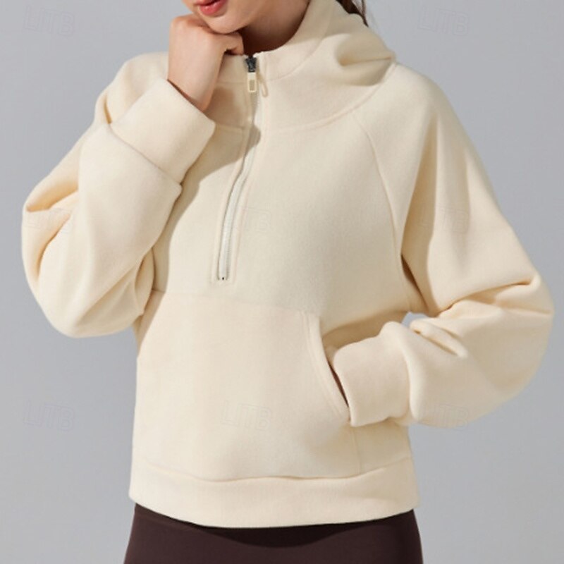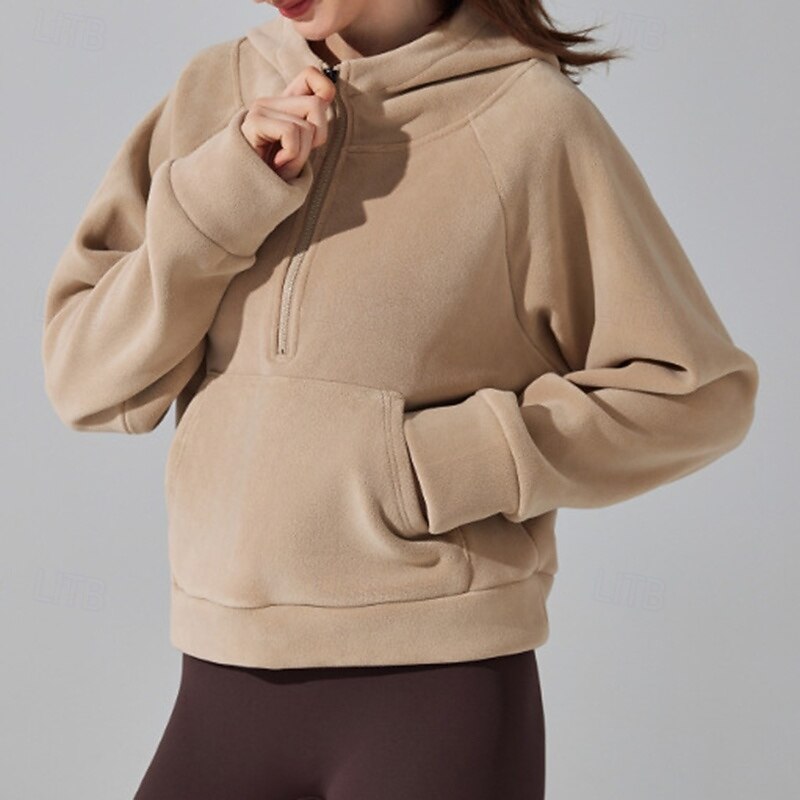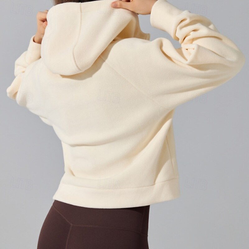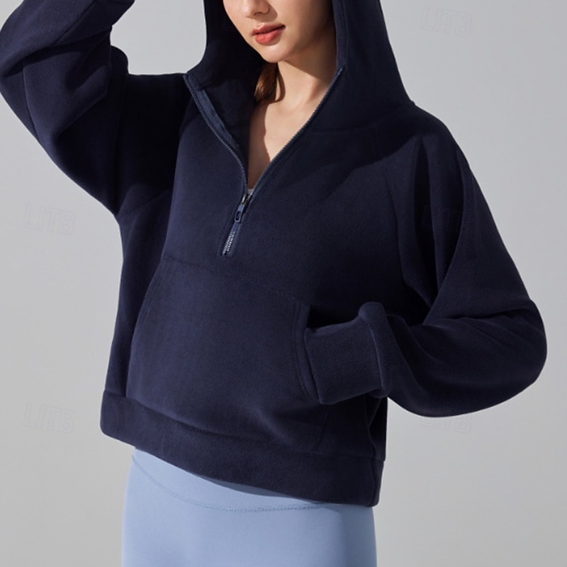 Women's Outdoor Sweatshirt Windproof Warm Pocket Long Sleeve Sports Solid Color Top For Gym Gym Workout Fitness Activewear 18