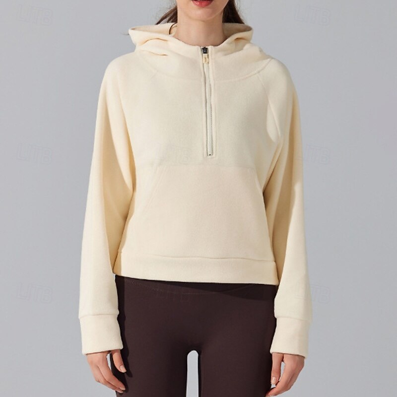 HOT ! Women's Outdoor Sweatshirt Windproof Warm Pocket Long Sleeve Sports Solid Color Top For Gym Gym Workout Fitness Activewear