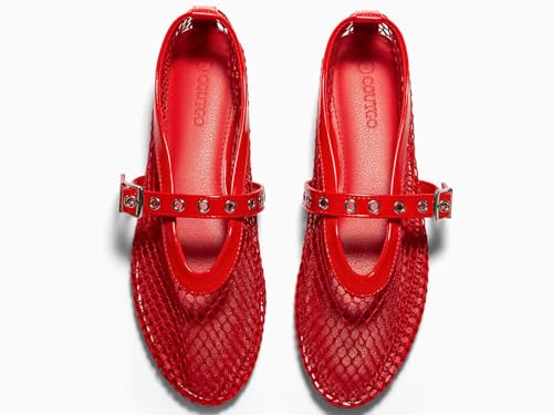 Coutgo Womens Mesh Ballet Flats Mary Jane Fishnet Ballerina Buckle Strap Comfortable Causal Dress Shoes 6
