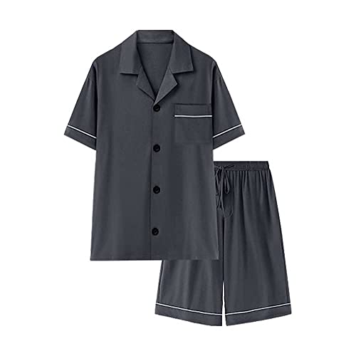 • CLASSIC STYLE PAJAMA TOP: Mens summer 2-piece pjs set feature a button-front short sleeve shirt with a notched collar and chest pocket, delicate contrasting piping detailing for the trendy and never go out of style