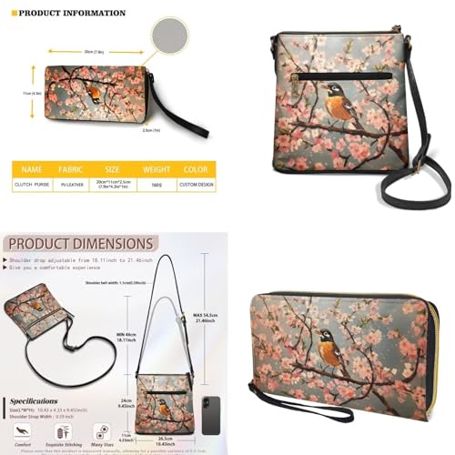 • Functional Pockets: The shoulder handbag contains 1 zippered pocket + 1 open pocket inside, there is 1 zipper pocket at the front and back of the exterior; The wallet has 4 card slots + 1 coin compartment + 1 large main pocket, paired with a smooth metal zipper and wristlet for organized storage