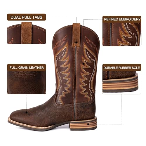 • PREMIUM FULL GRAIN COWHIDE UPPER & SHAFT: The upper of these Western cowboy boots is crafted from high-quality full-grain cowhide. This type of leather is known for its natural texture, softness, and excellent breathability. It not only provides a comfortable wearing experience but also ages gracefully, developing a unique patina over time.
