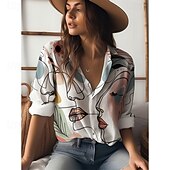 More information about Women's Shirt Summer Tops Casual Beach Long Sleeve Shirt Collar Regular Tops White and Pink Gray+White Summer Spring Fall