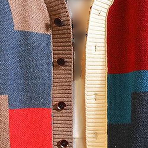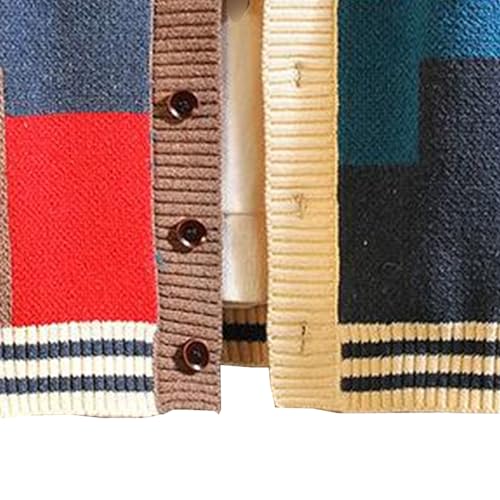 Men Shawl Collar Colorful Knit Cardigan Buttons Shawl Collar Knit Sweater Color Block Shawl Collar Cardigan Sweater 7