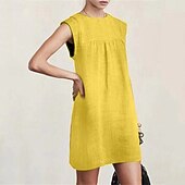 More information about Women's Mini Dress Linen-Inspired Dresses Casual Dress Cotton Linen Dress Stylish Casual Vacation Daily Date Regular Fit Plain Sleeveless Crew Neck Yellow Red Gray Summer Spring