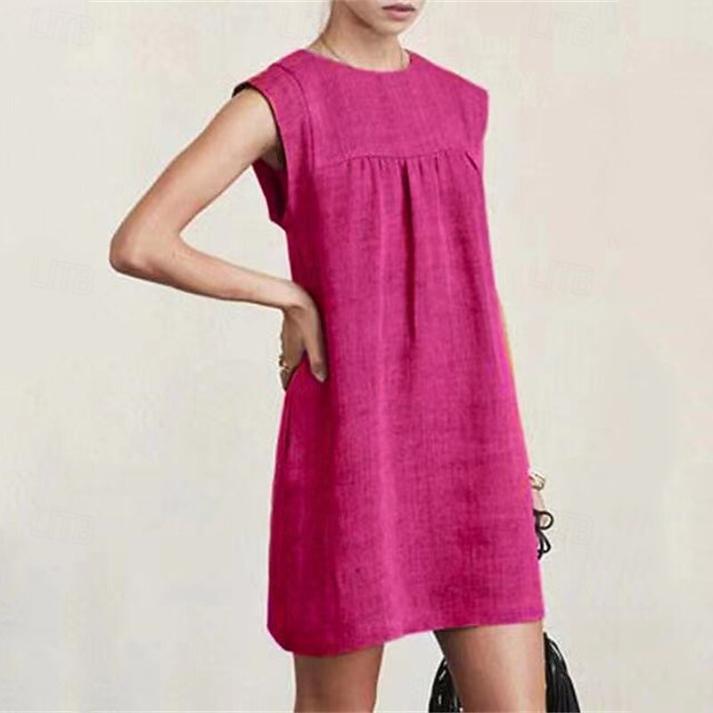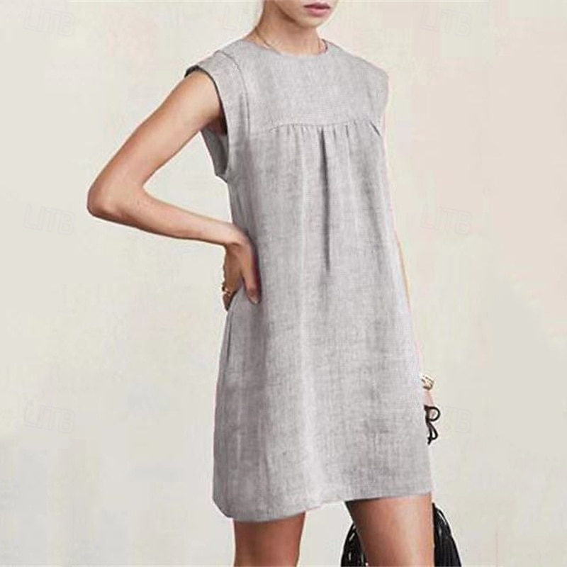 HOT ! Women's Mini Dress Linen-Inspired Dresses Casual Dress Cotton Linen Dress Stylish Casual Vacation Daily Date Regular Fit Plain Sleeveless Crew Neck Yellow Red Gray Summer Spring