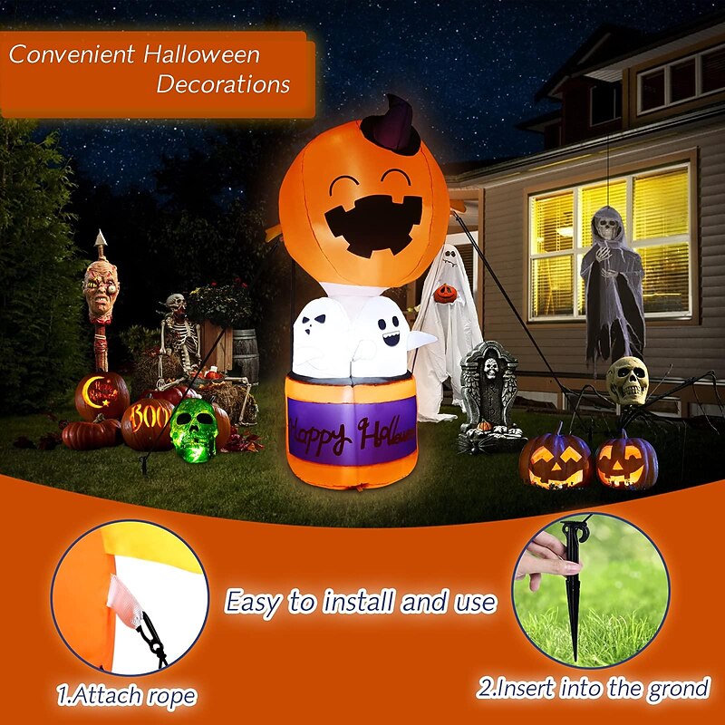 More information about 182 cm High Halloween Inflatable Pumpkin Hot Air Balloon Ghost Decorations with LED Light Halloween Indoor Outdoor Garden Decoration