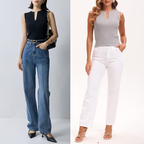 More information about Women Summer Sleeveless Sweater Vest Minimalist V-Slit Neck Slim Fit Pullover Tank